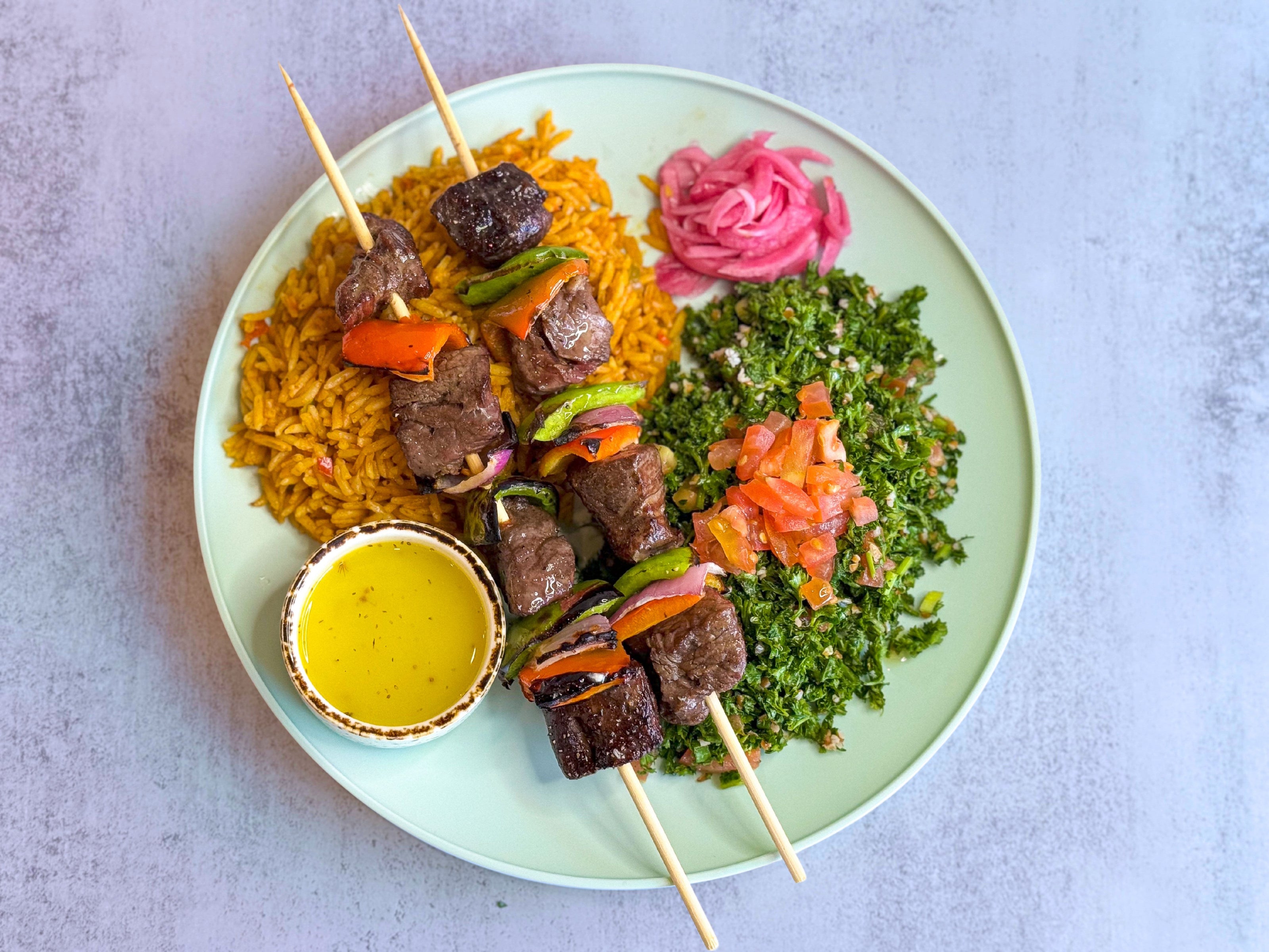 Steak Kabob • Kabseh Rice • Kale Tabouli